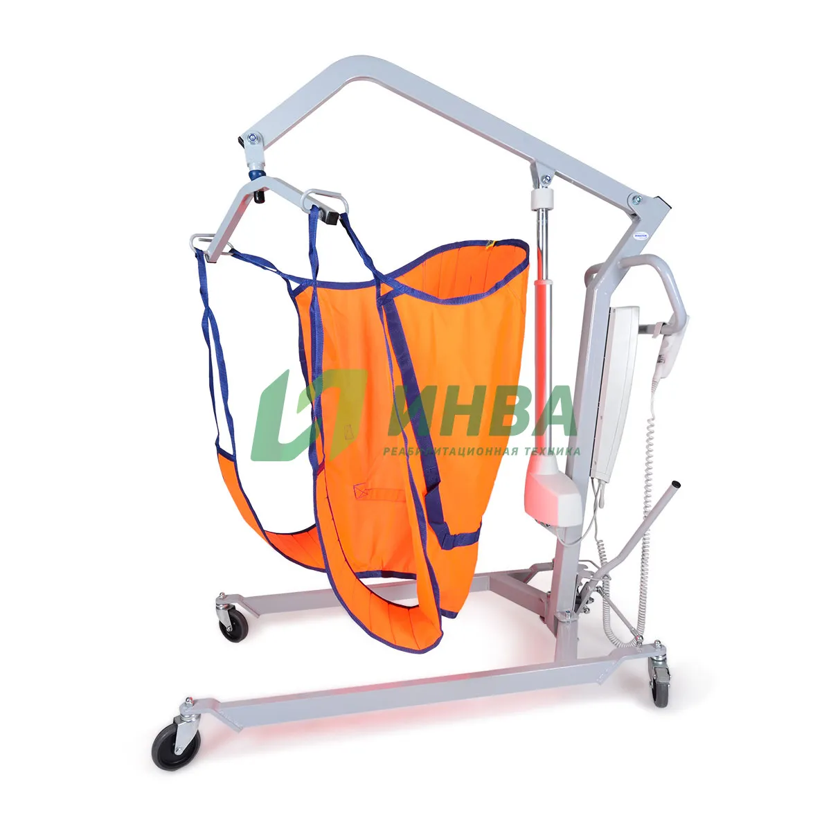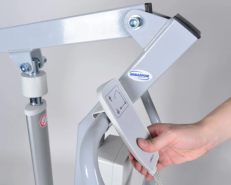 Передвижной электрический подъемник для повседневного ухода за маломобильными людьми в лечебных учреждениях и домашних условиях. Обеспечивает бережный подъем, спуск и перемещение пациента, в том числе из положения лежа в сидячее.